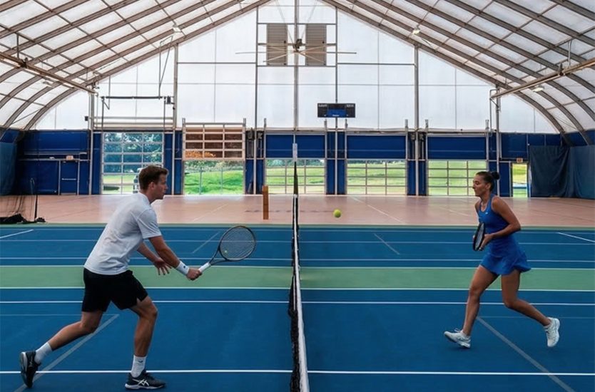 We use industrial fans and HVAC systems for constant air circulation, combined with insulated fabric to ensure a comfortable playing environment year-round.
