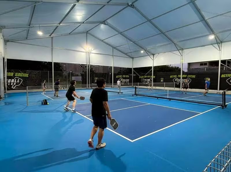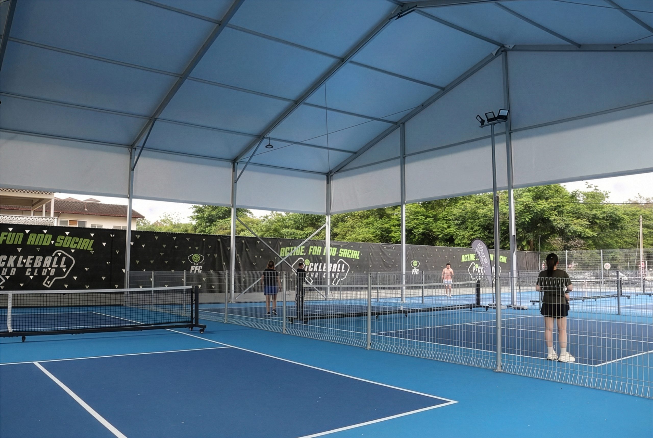 With a tent covering the courts, you can keep the games going regardless of the season, from hot summers to drizzly fall days.